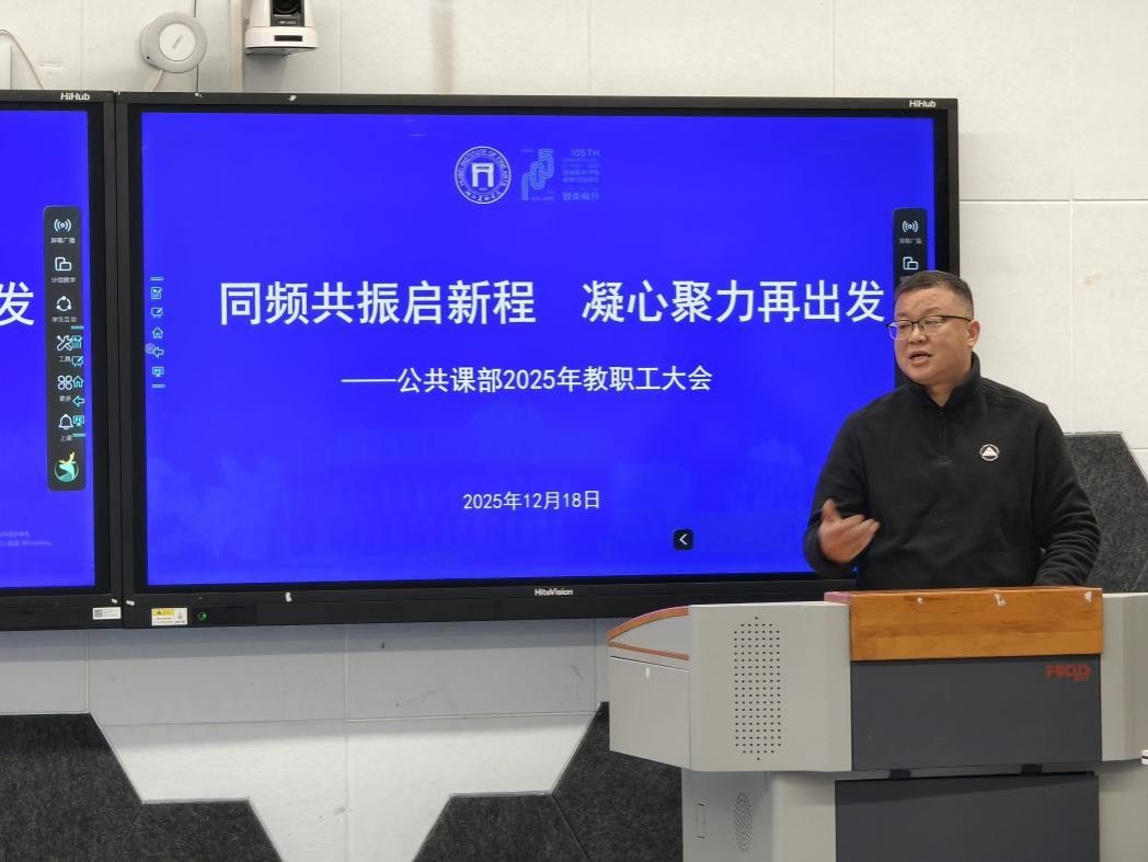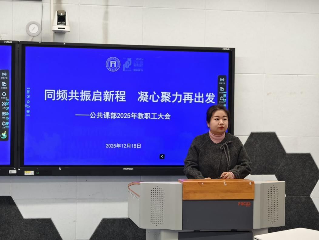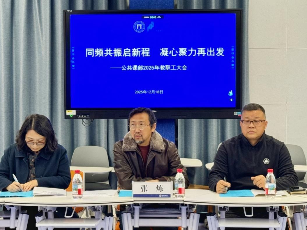 12月18日,公共课部2025年度教职工大会在A12-108会议室召开。副校长张炼出席会议,公共课部主任兼党总支书记、分工会主席周捷峰主持会议,公共课部全体教职工参加会议。