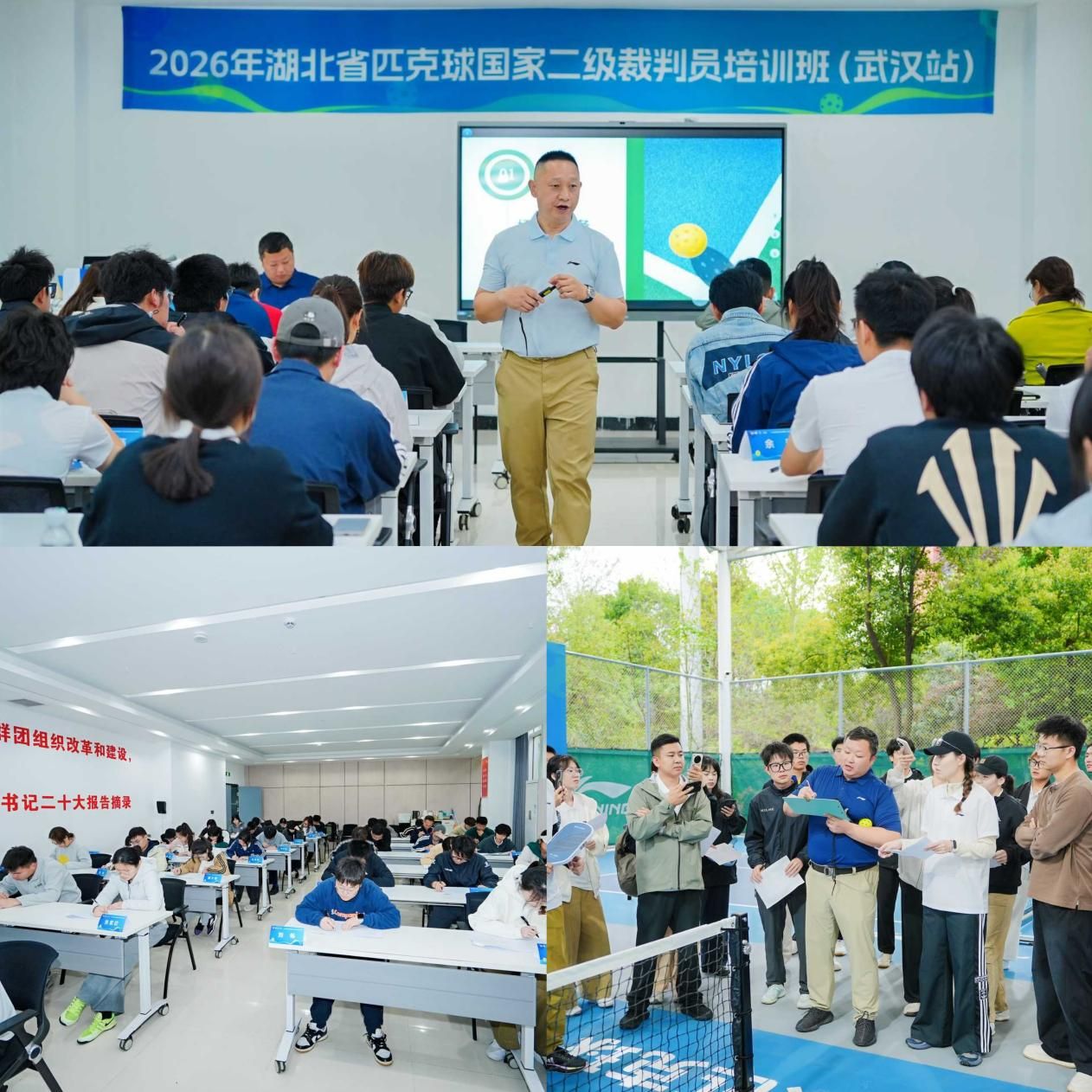 4月8—9日,由湖北省网球协会主办的匹克球国家二级裁判员培训班(武汉站)在汉运动·李宁汉派匹克球俱乐部举办。我校公共课部体育教研室教师周媛、王鑫参加培训,并顺利执裁2026年"李宁杯"武汉市匹克球俱乐部超级联赛暨"武鄂黄黄都市圈"匹克球邀请赛(CPC-100),以专业素养助力区域匹克球运动规范化发展。