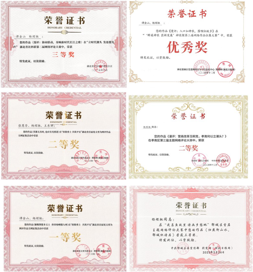 最近,我创作的漫评《荆楚有侠义》,获得了湖北省首届见义勇为网评作品二等奖和湖北省 2025第二季度网络宣传好作品。拿到奖项的时候,我既开心又感慨,这是对我多年坚持的肯定。我知道,这份荣誉不是终点,未来,我会继续坚持自己,认真做好每一篇漫评,在热爱的道路上,脚踏实地,慢慢前行。