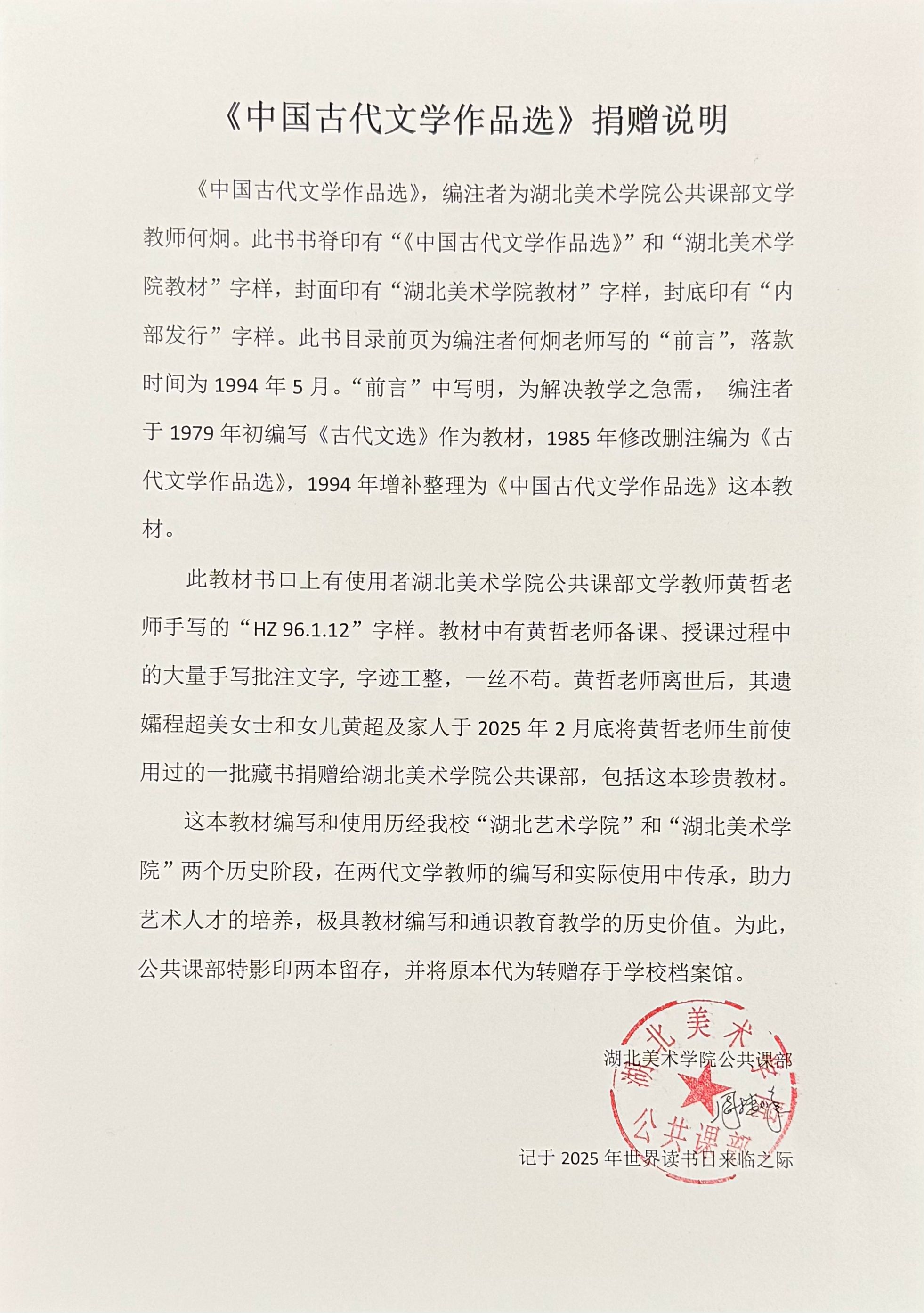 2025年2月,程超美、黄超女士捐赠黄哲副教授教学用书籍。